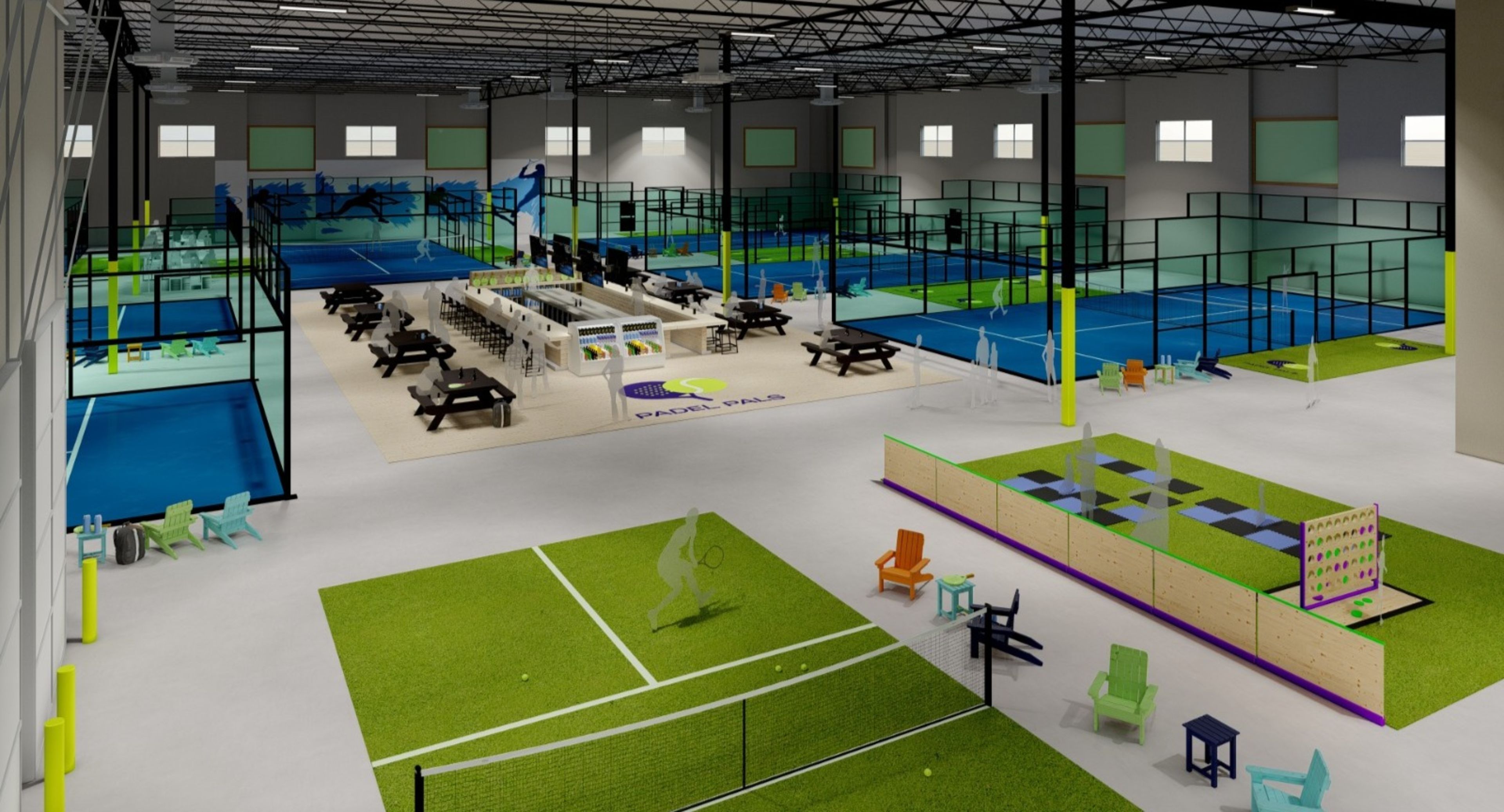 Welcome to the largest indoor padel and pickleball club in the East Valley Mesa/Gilbert. Book your court in our our free-membership club or enjoy our other amenities such as sports bar, kid's zone, and co-working spaces. No day-pass needed! This is your club to Play, Compete, and Belong!